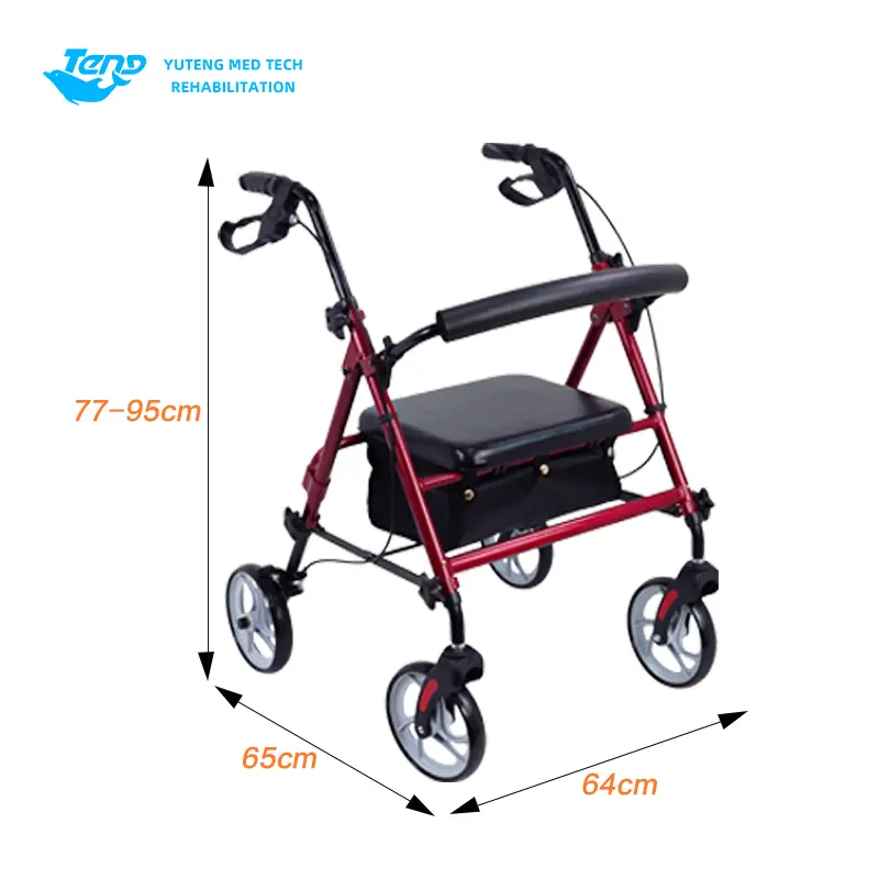 Laget av aluminiumsrør med en rørdiameter på 51,4*26*1,3mm og en diameter på 22*2,0mm. Rollatoren kan slås sammen til venstre og høyre.
